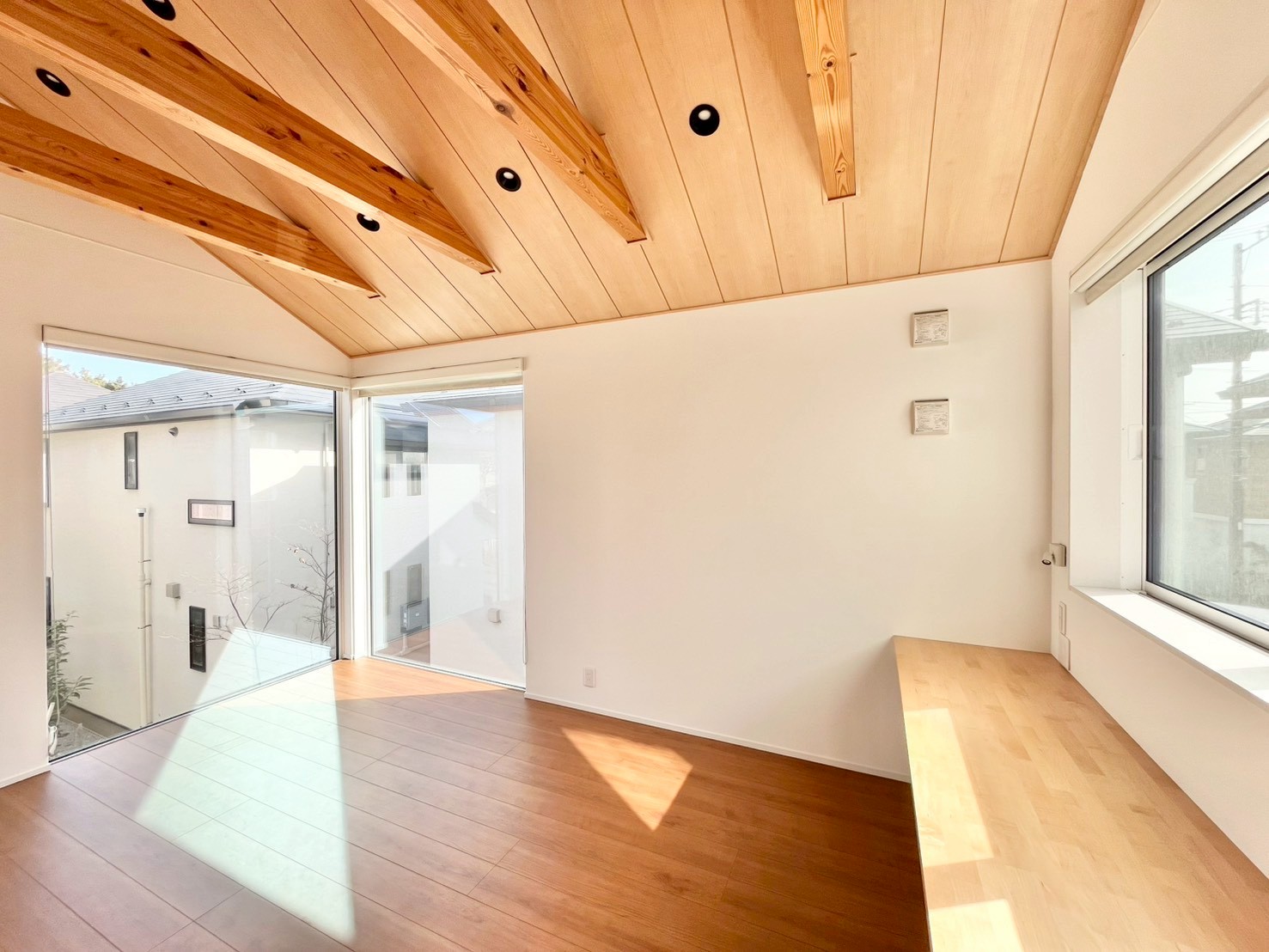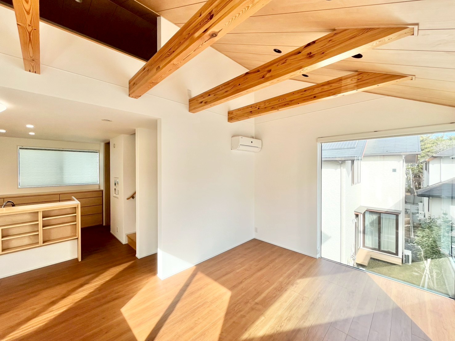 - リビング上部は勾配天井となっており開放感がございます