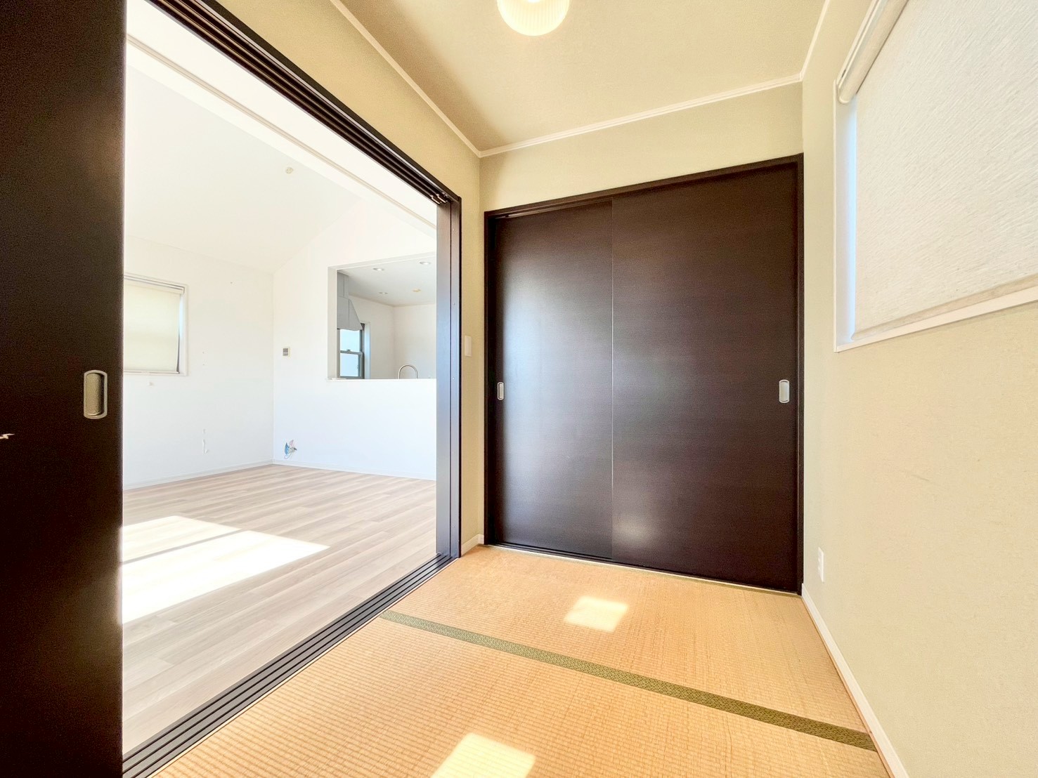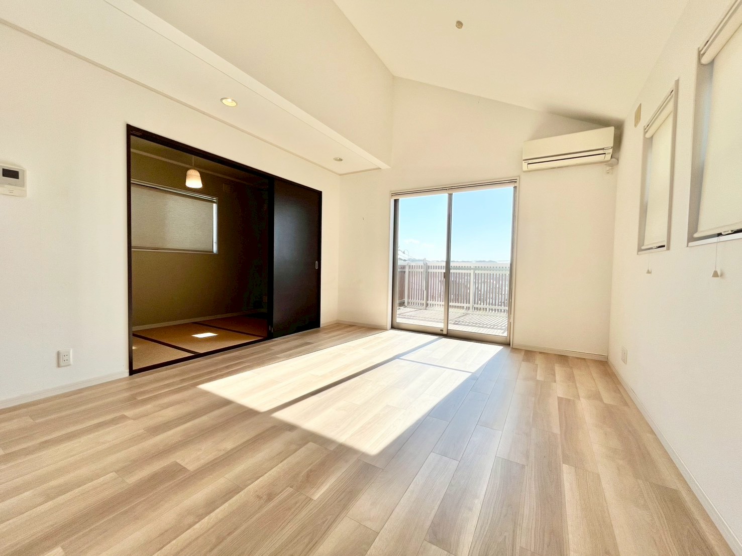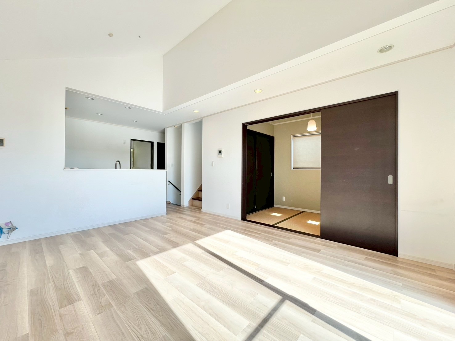 LDKに隣接した畳スペース、LDKから繋がるウッドデッキはまるで自然と一体化したアウトドアリビング。