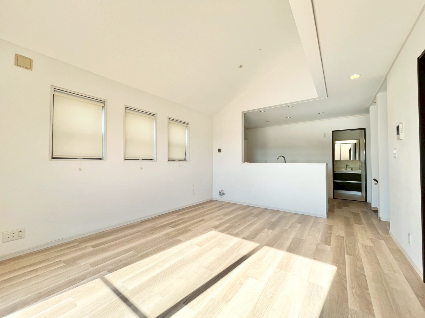 勾配天井とたくさんの窓が光をたっぷり取り込み、四季の移ろいを室内から楽しめます。