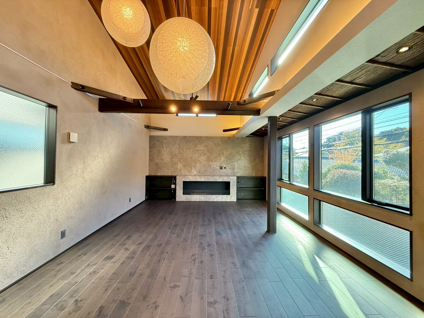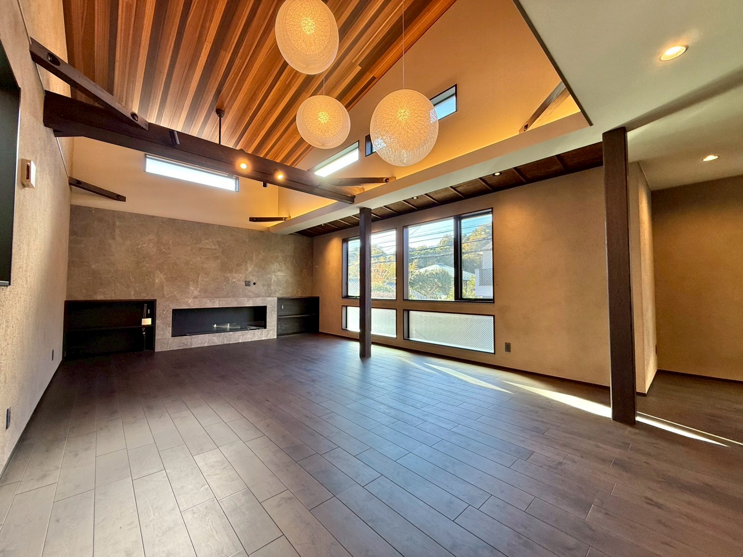- リビング部分に床暖房がございます。また上部吹抜けとなっております