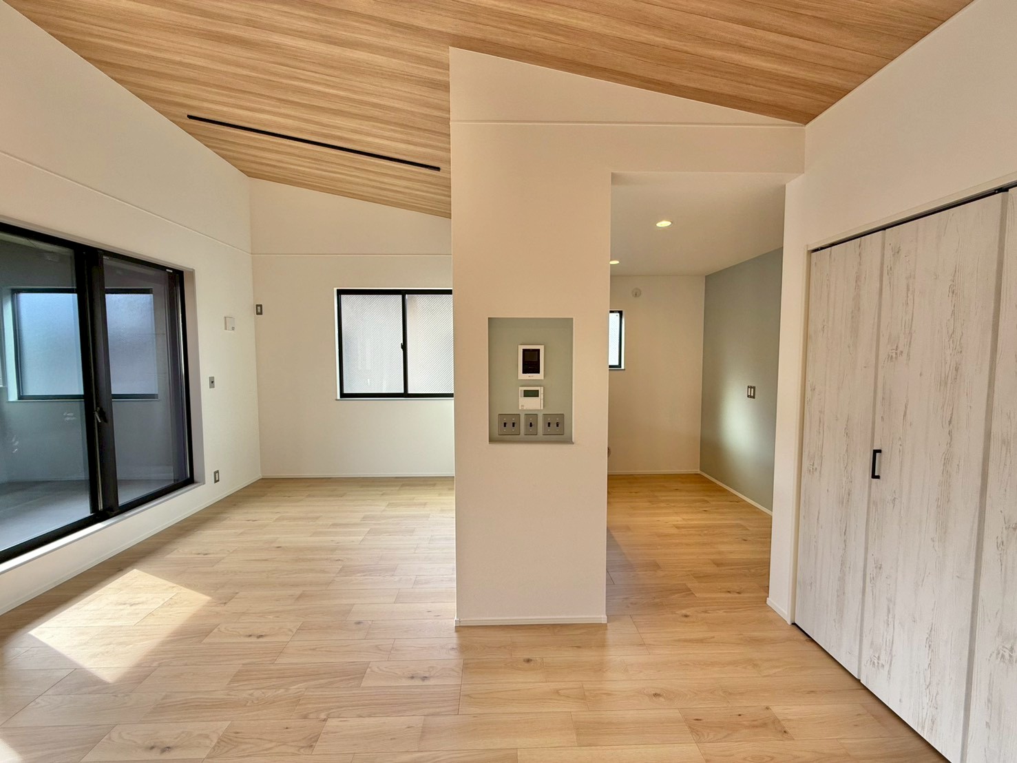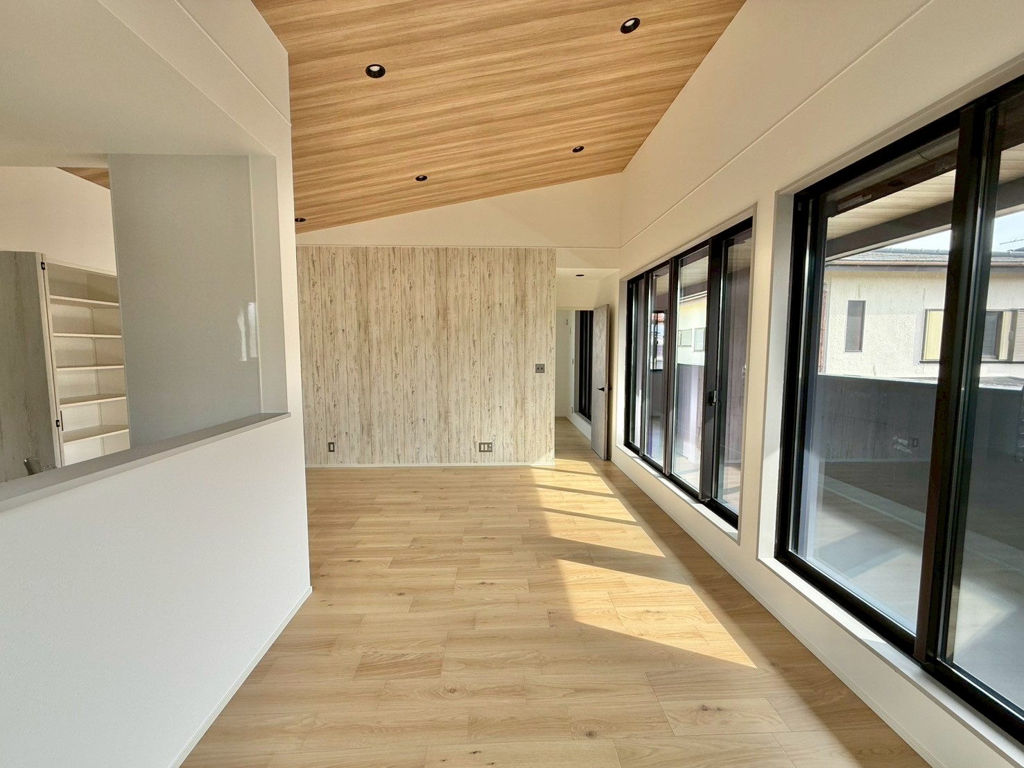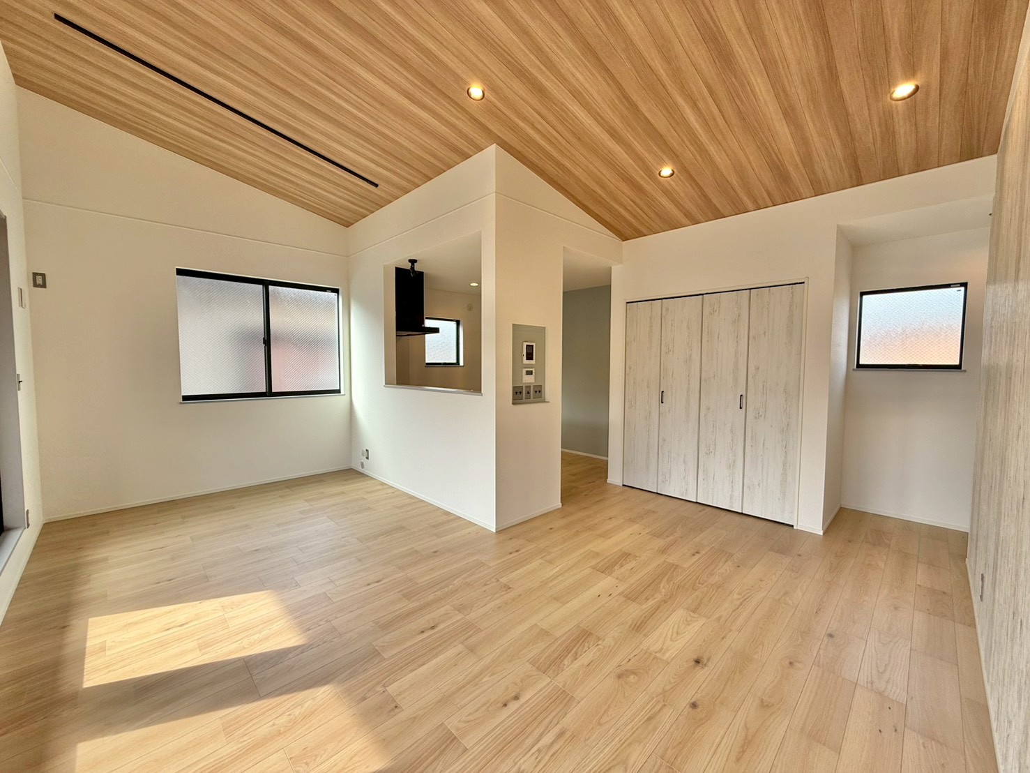 - 開口部が多く明るいLDK、勾配天井となっており開放感もございます