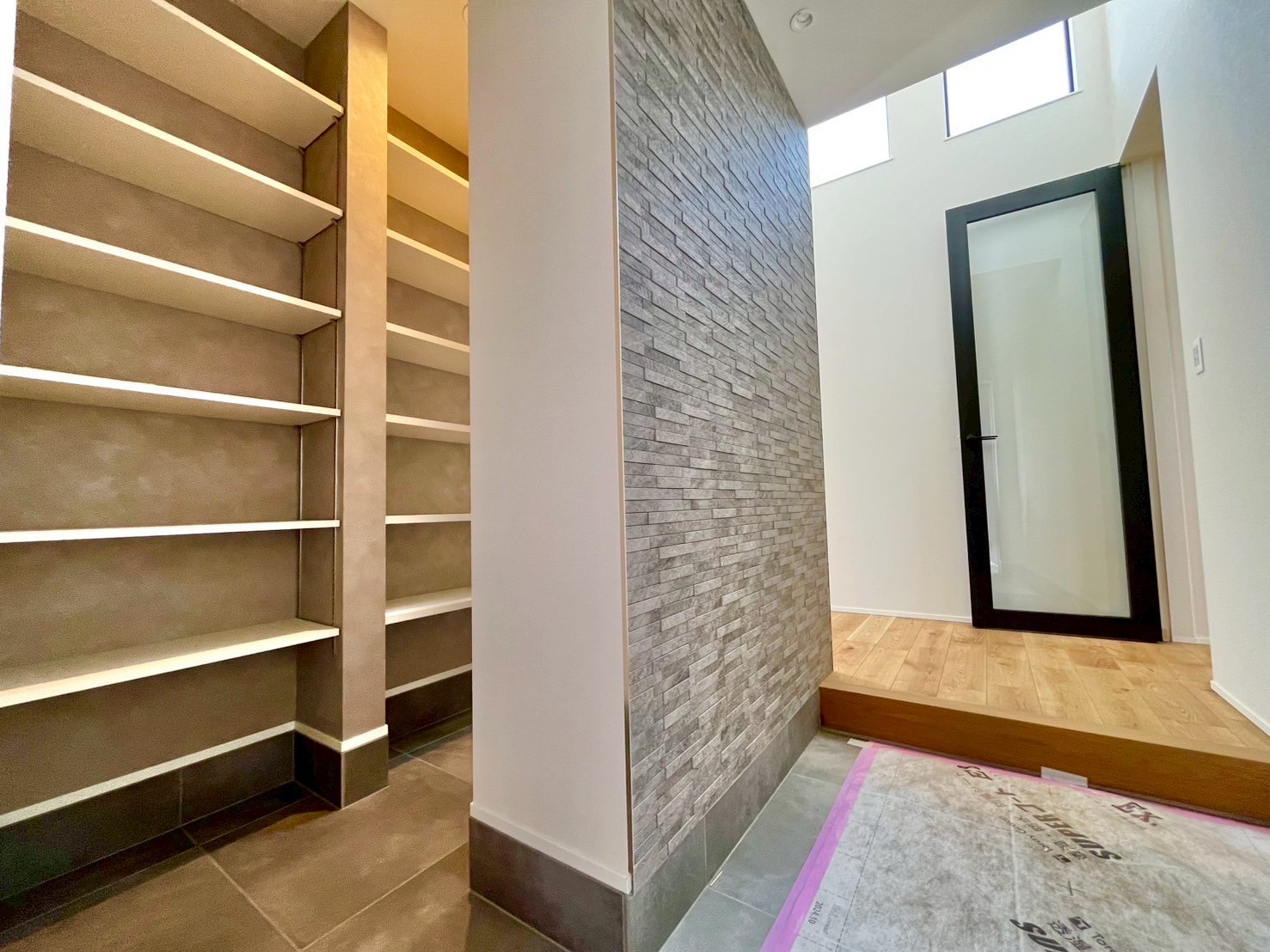 - 玄関横にはシューズインクローゼット、アクセントにエコカラットが採用されております。