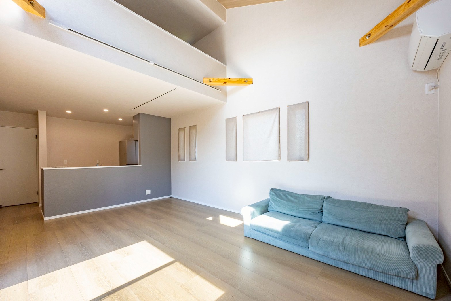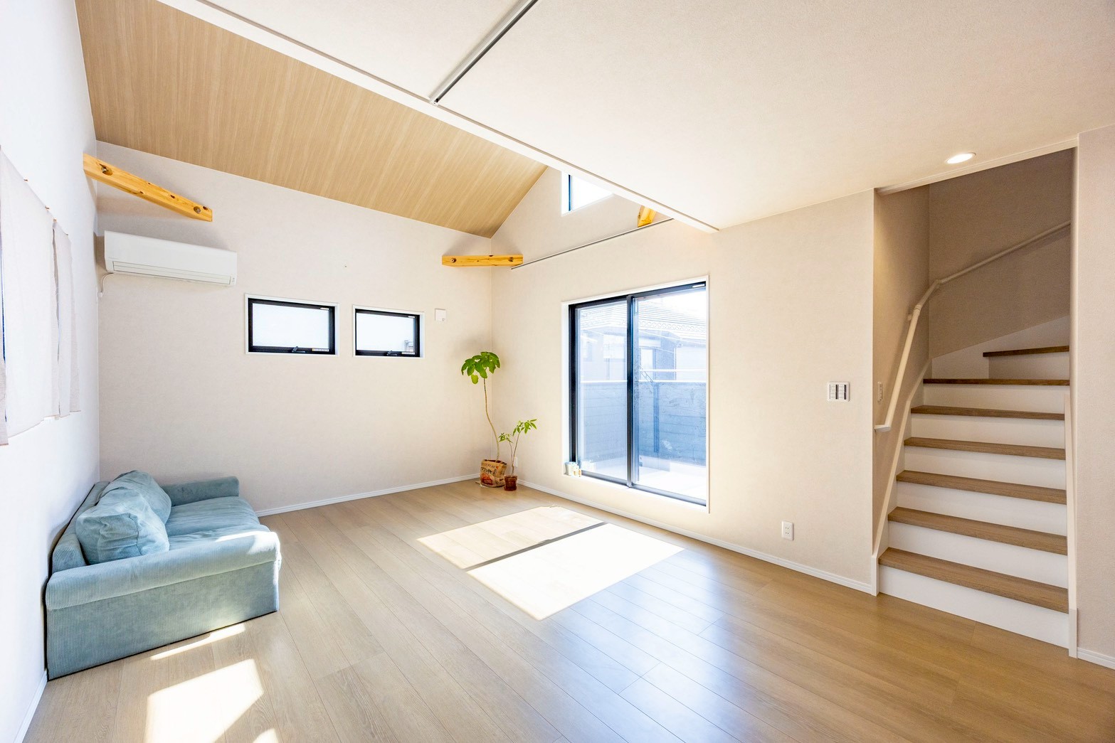 - LD部分上部は吹抜け・勾配天井の為、開放感があり陽当たり良好です