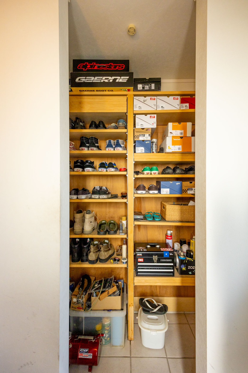玄関を開けると広がるのは、ゆとりある土間空間とシューズインクローク。
