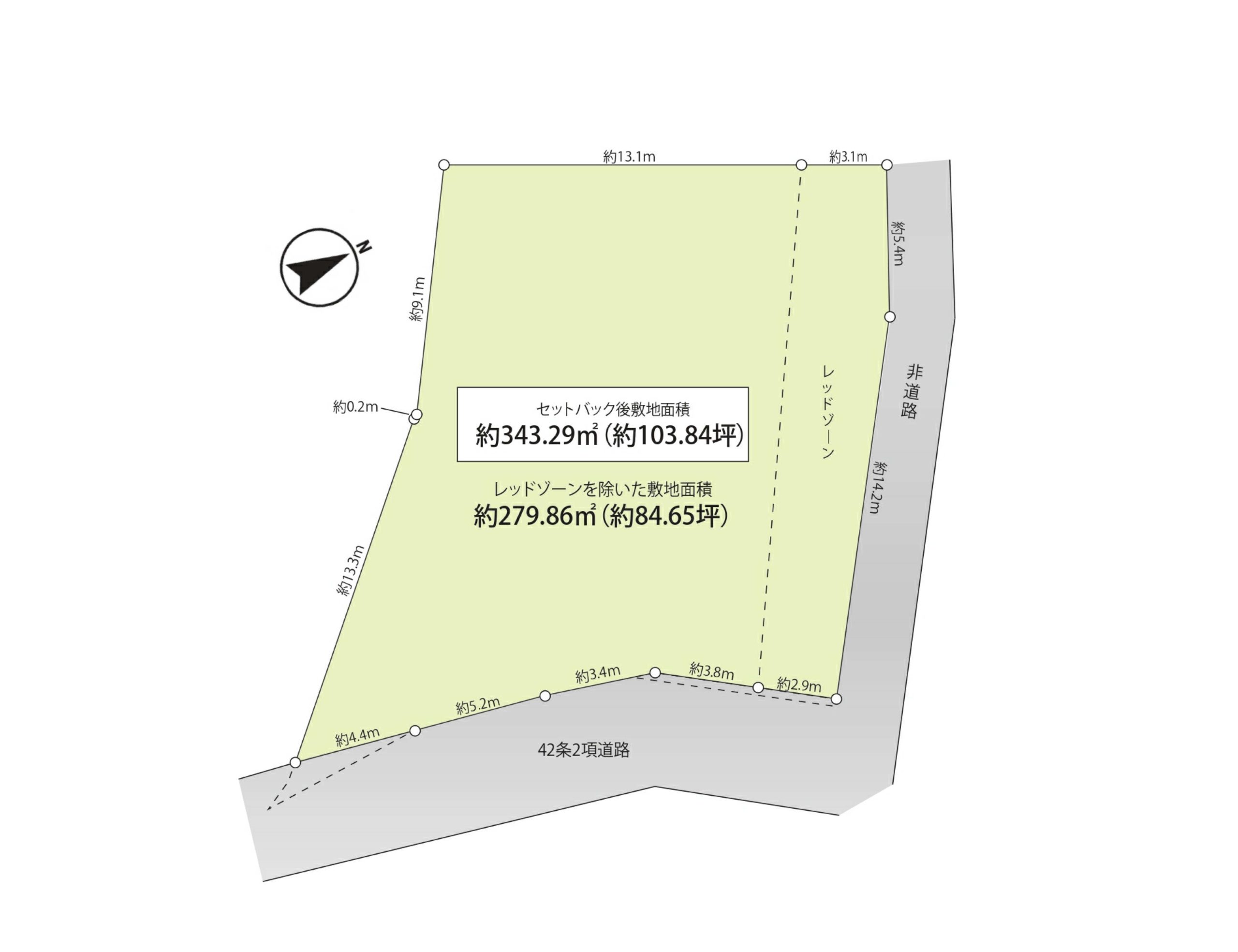 • 現地(北東側非道路部分より)