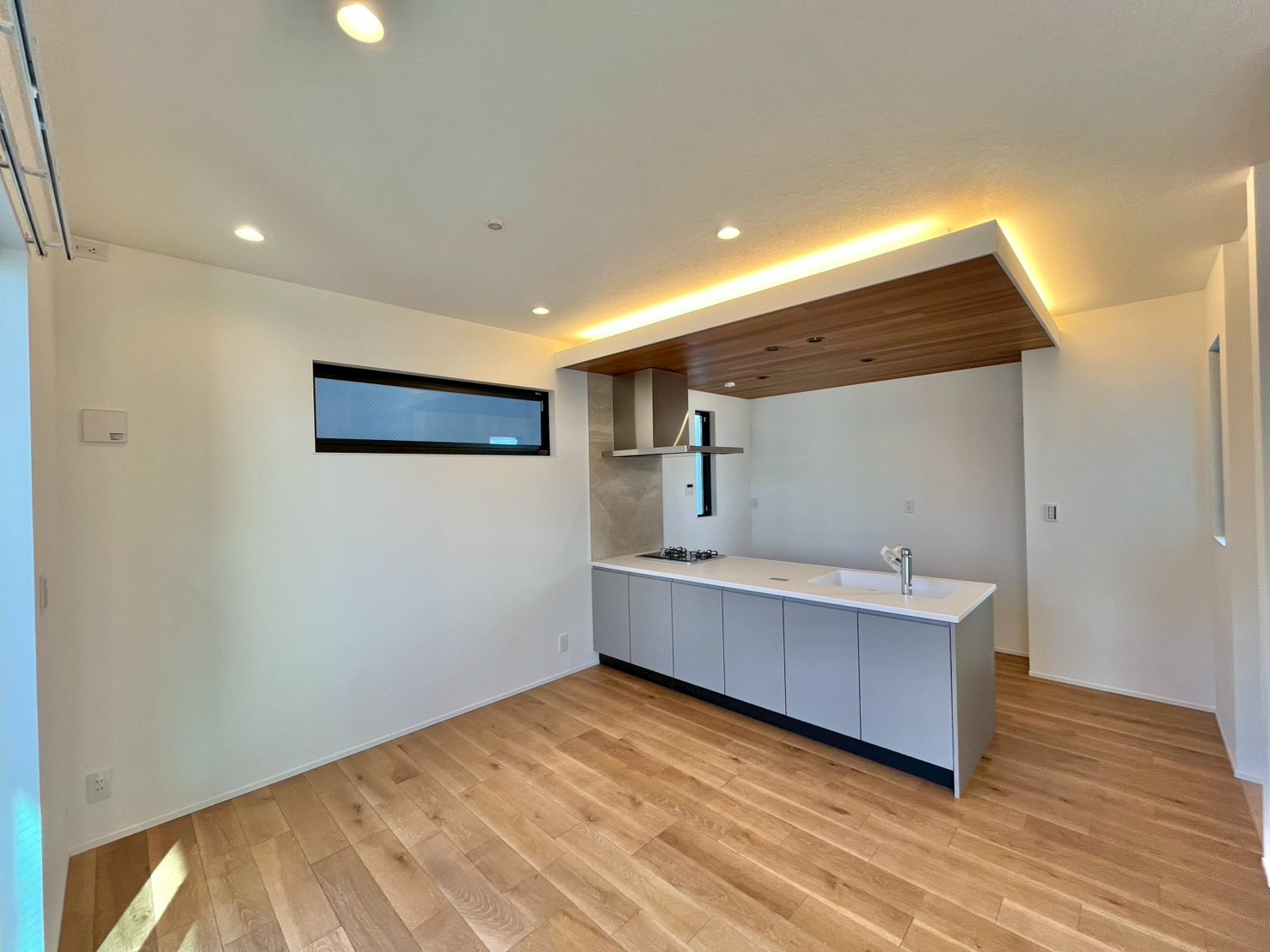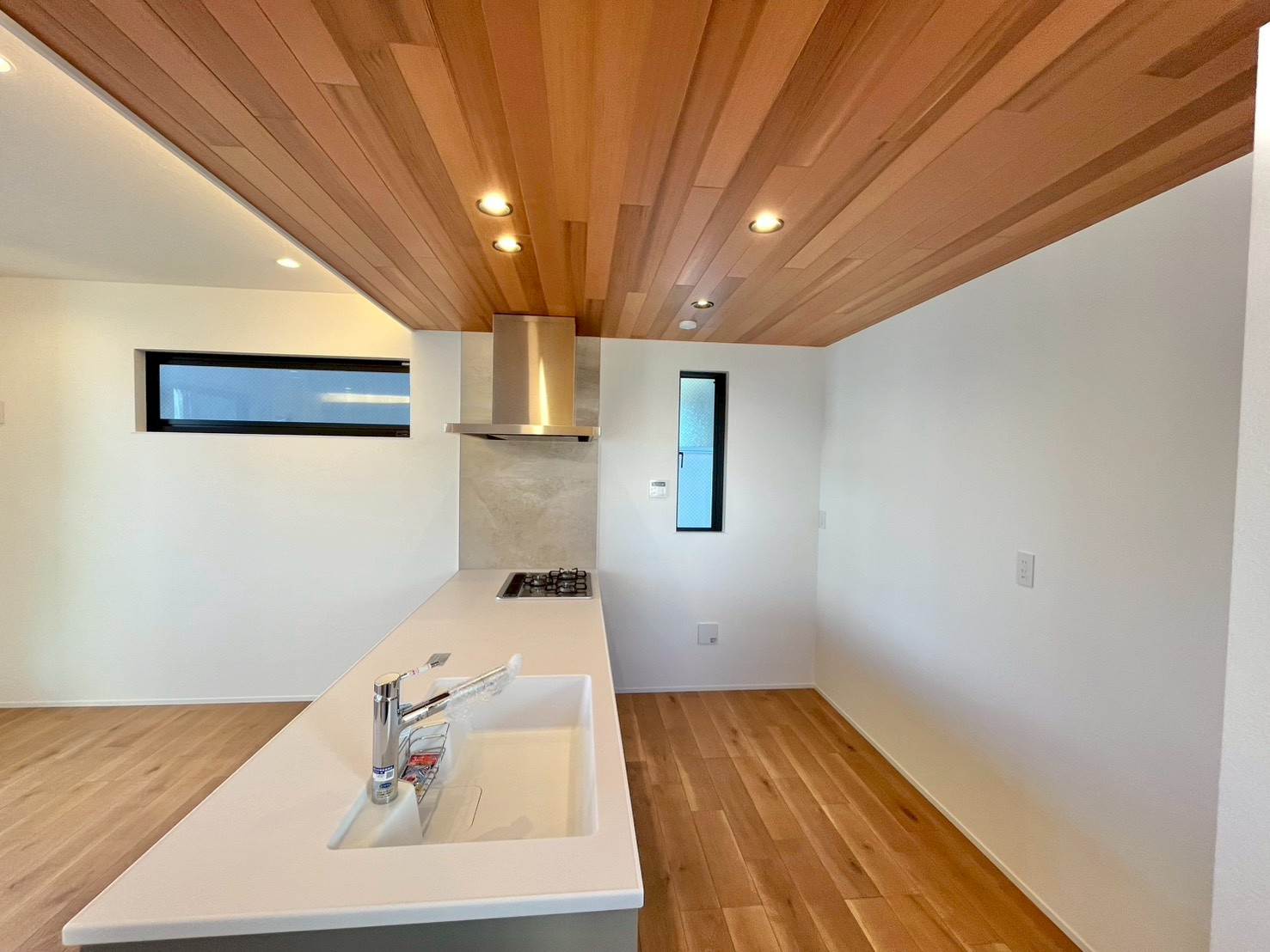 - キッチン天井部分には天然木の板張り