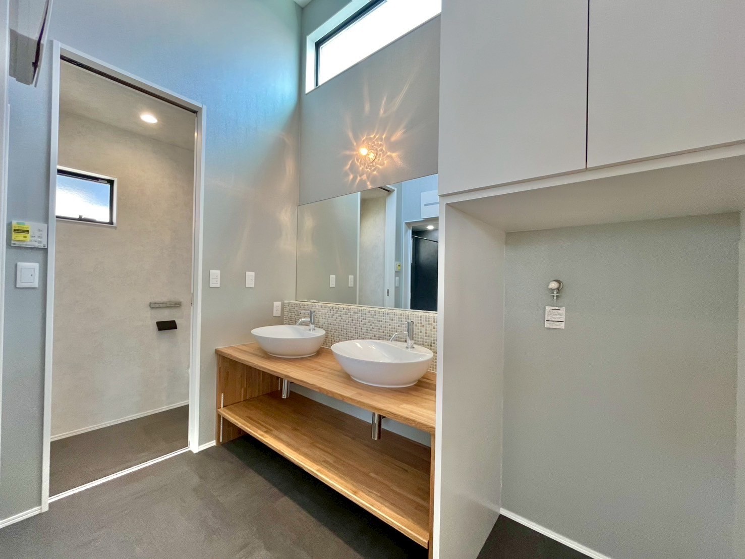 - 洗面室には便利な2ボウル洗面台、天井も高く、開放感がございます