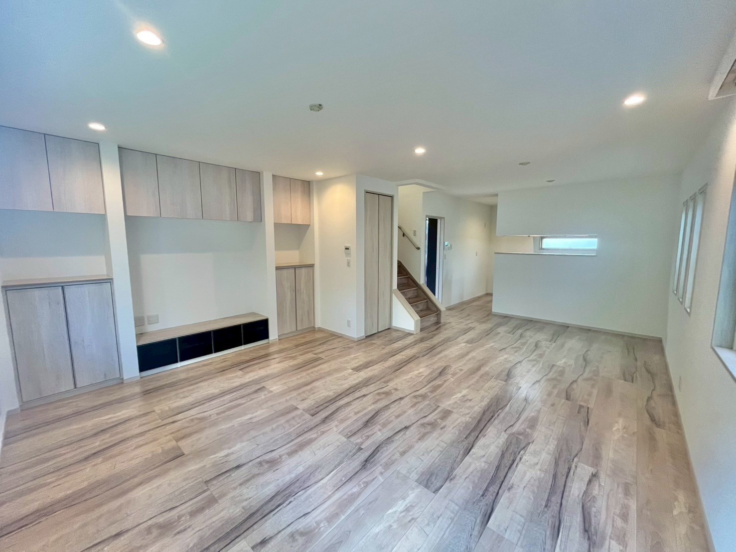 - リビング部分、TV台造設されており上部収納もございます
