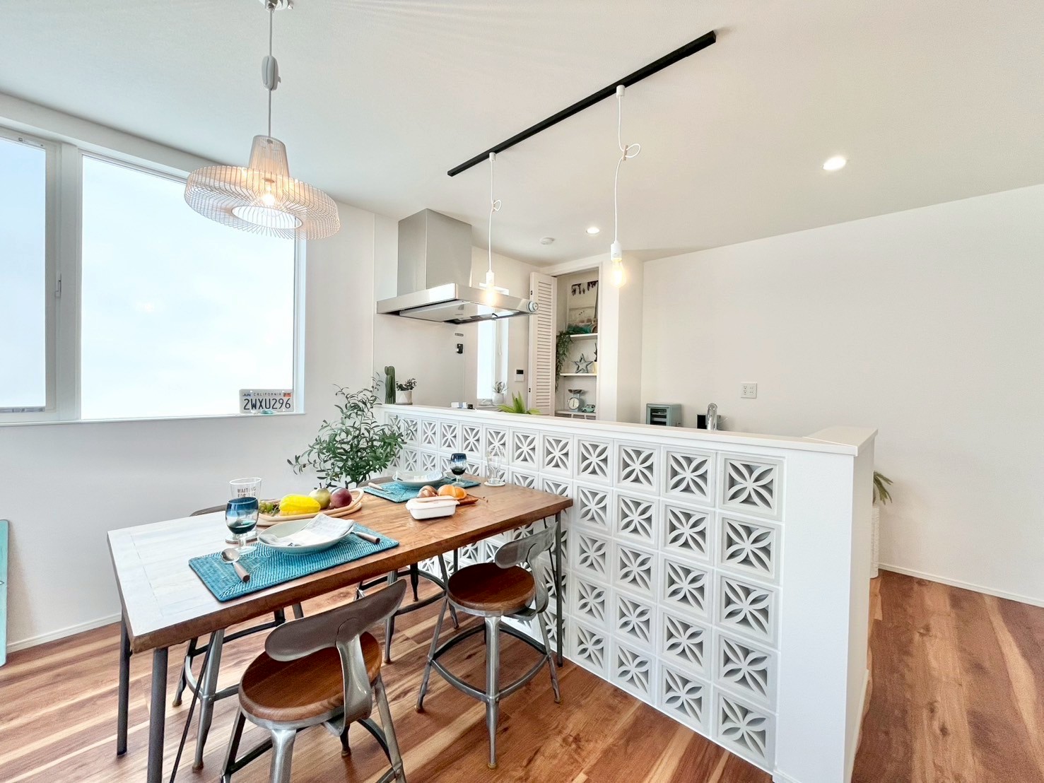 - 花ブロックがポイントのキッチンカウンター