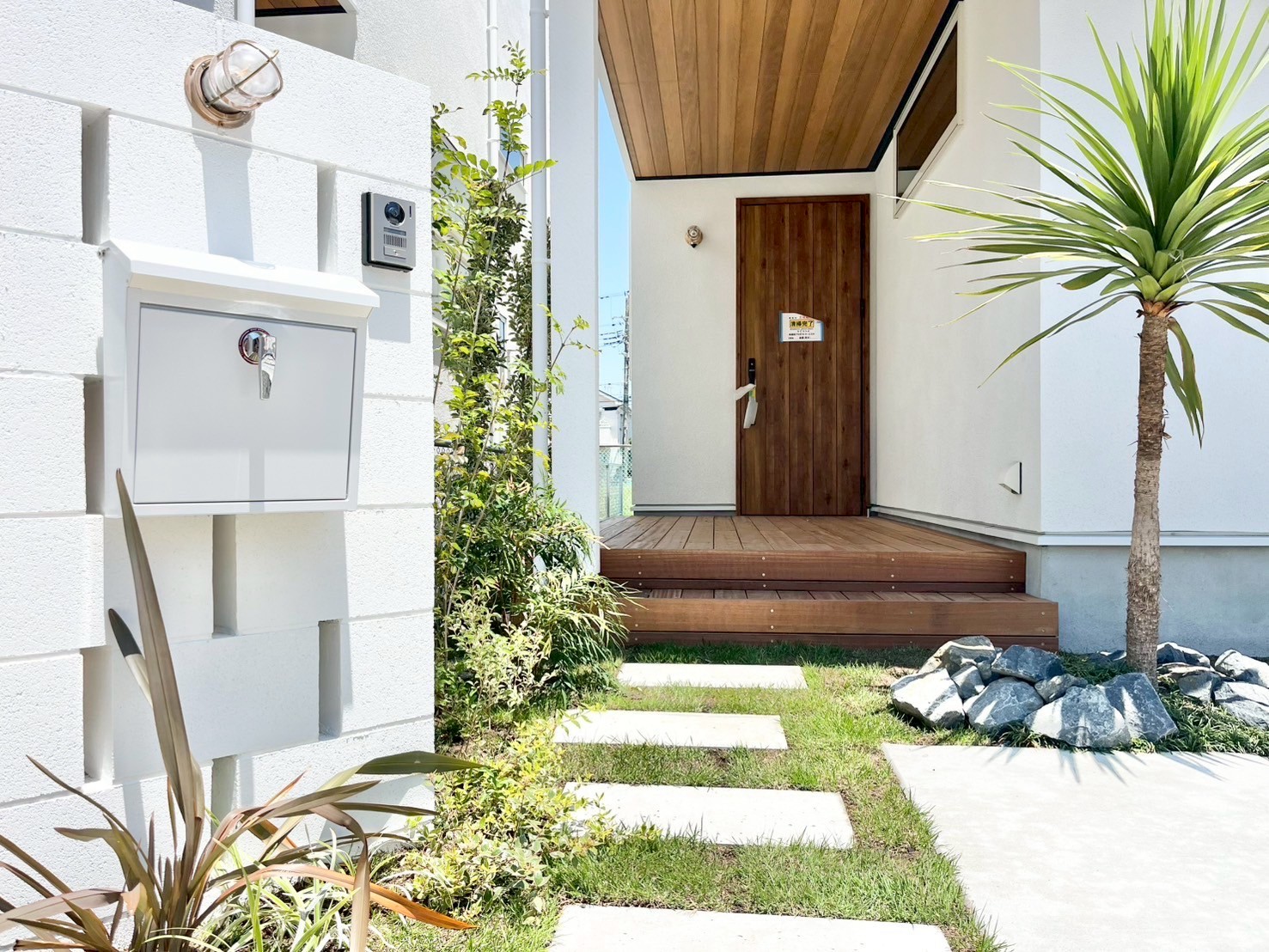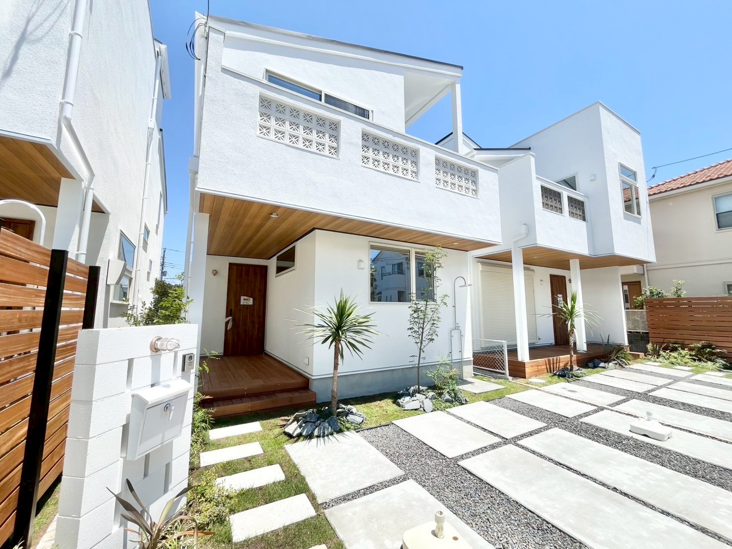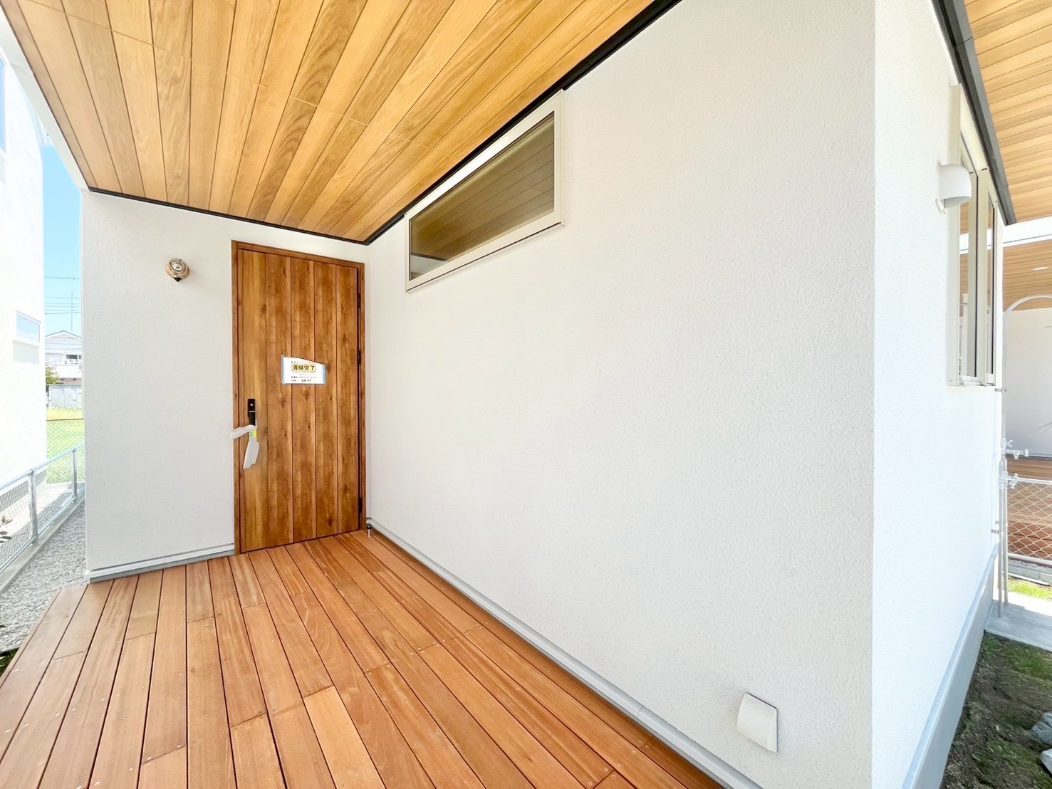 - 玄関から広がるウッドデッキ