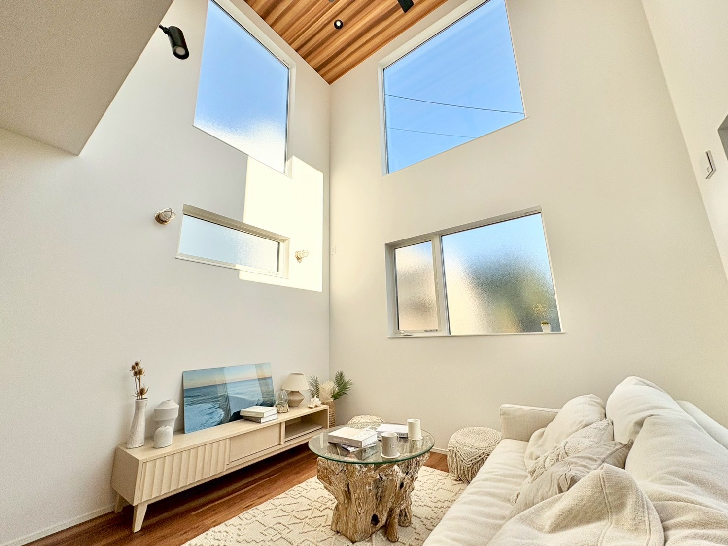 - リビング上部は吹抜けとなっており明るく開放感がございます