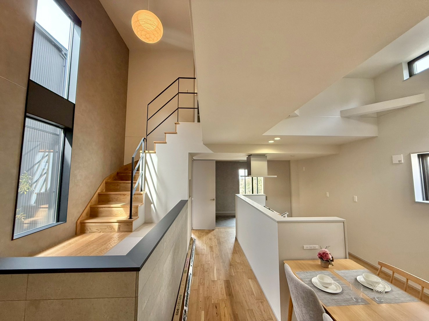 - 上部吹抜けとなっており開放感あり、階段スキップフロアにはカウンターがあり様々な用途にお使いいただけます。