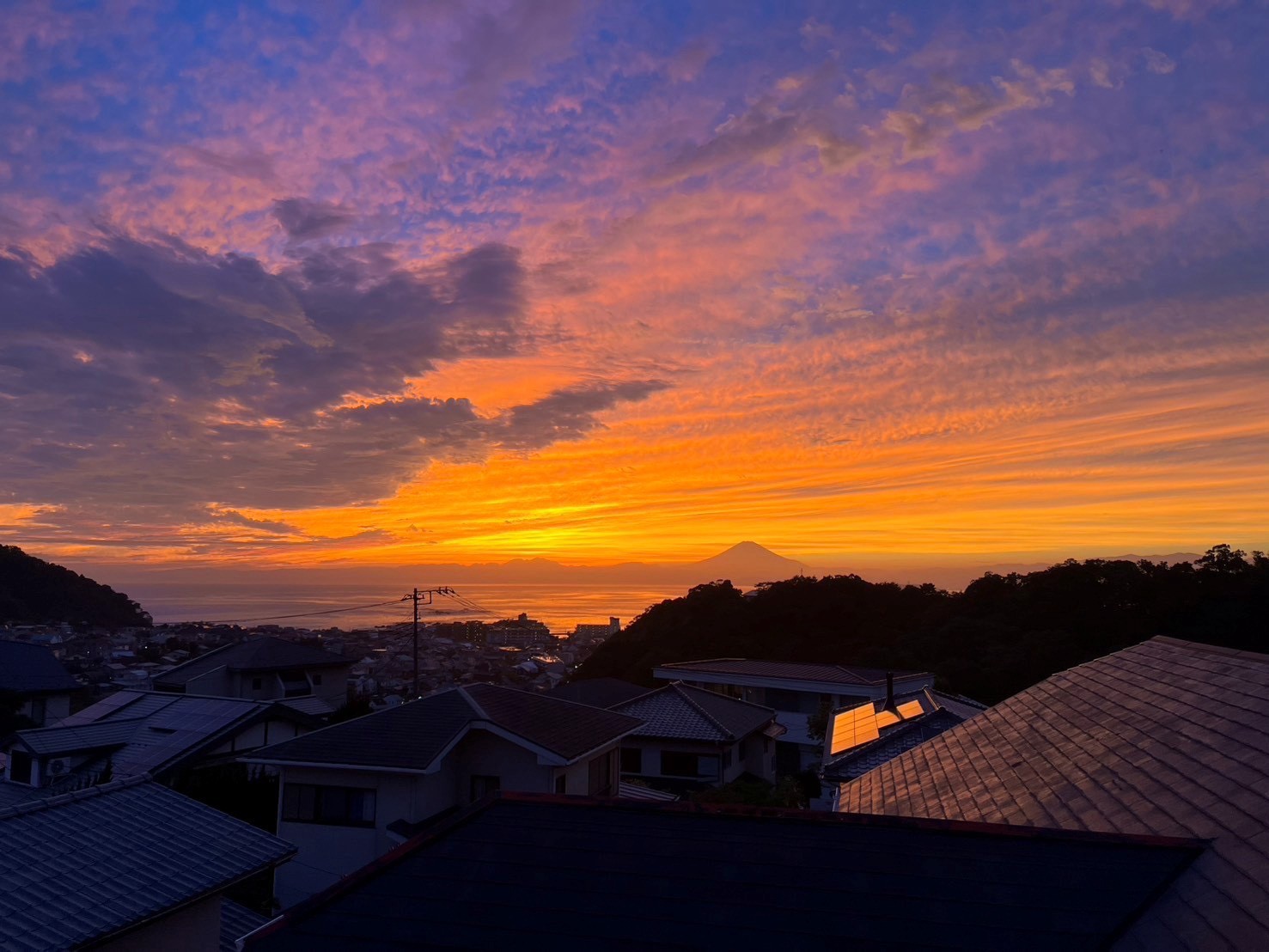 遮ることのない空と海、そして雄大な富士山。