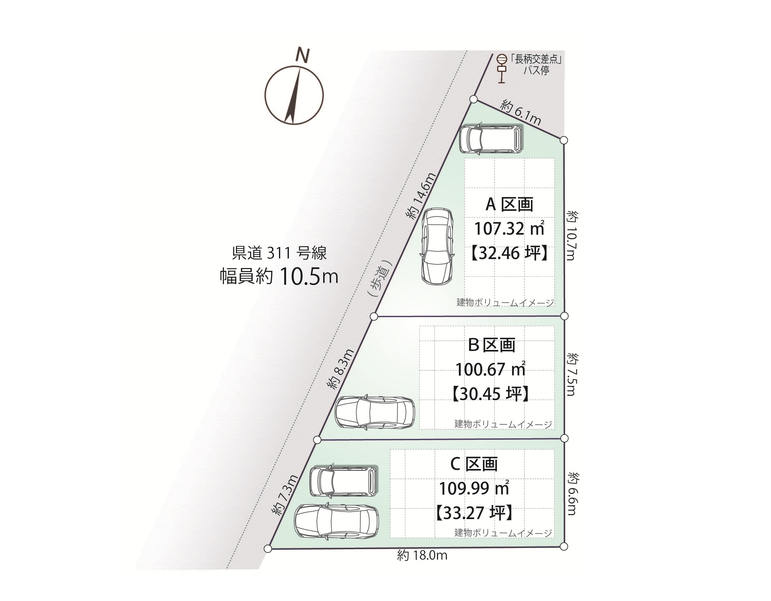- 前面道路 西側公道幅員約10.0mに約30.2m接道