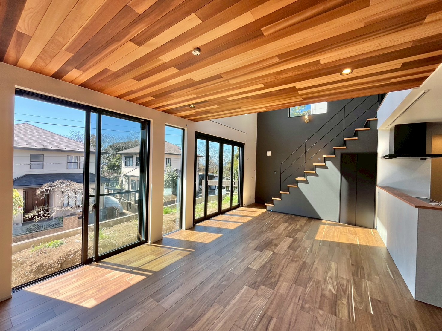 アカシア無垢材の温もりと「グラフテクト」キッチンが彩る、鵠沼海岸のモダンな暮らし