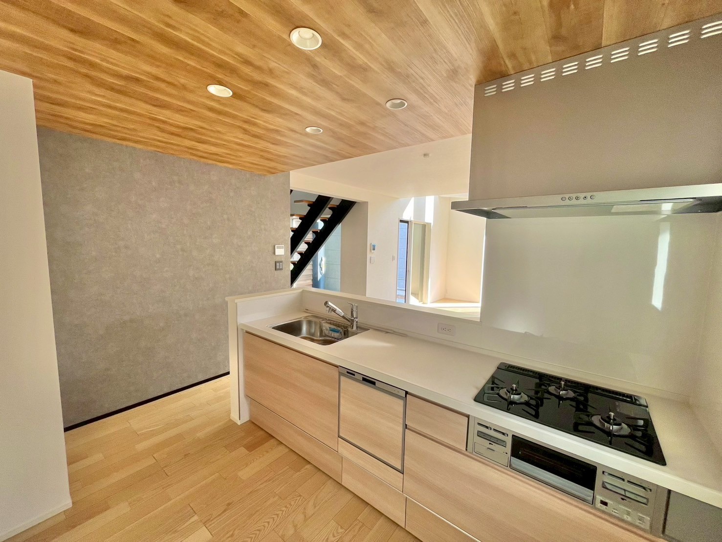 - ダイニング部分上部は吹抜けとなっており、明るく開放感がございます